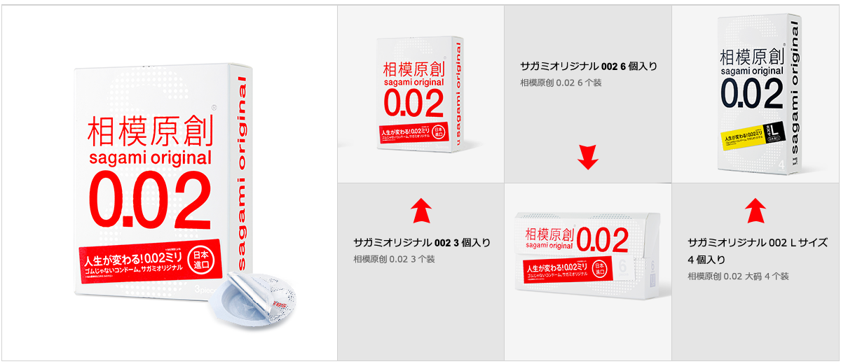 sagami original 0.02 (相模原創0.02系列), 是日本相模橡膠工業株式會社于1998年推出首次創新發明并向日本市場的一種以聚氨基甲酸酯 (高分子材料)為原料制成的非乳膠安全套, 厚度僅0.02mm, 是傳統的橡膠產品“厚度一半,強度三倍”, 并且擁有高導熱性能,讓產品使用體驗更加美妙!